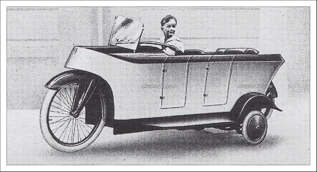 The design of the Atlantic vehicle allowed it to seat two passengers in a tandem arrangement. Notably, it featured small auxiliary wheels on the sides that could be lowered when the vehicle was stationary, providing stability and support. This innovative approach to vehicle design reflected the experimental nature of early automotive engineering during the early 20th century.