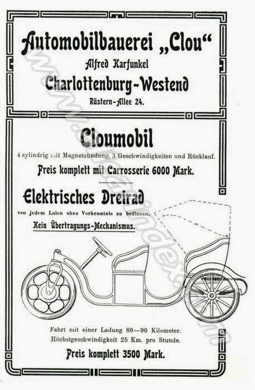 1906 – 1908 Company name Automobilbauerei Clou Alfred Karfunkel Place Charlottenburg-Westend Country Germany