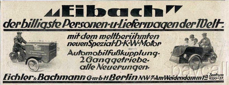 Eibach was a German automotive manufacturer founded in 1924 by Eichner & Bachmann GmbH in Berlin. The company specialized in the production of three-wheeled vehicles, which were a popular form of transportation during the early 20th century.
