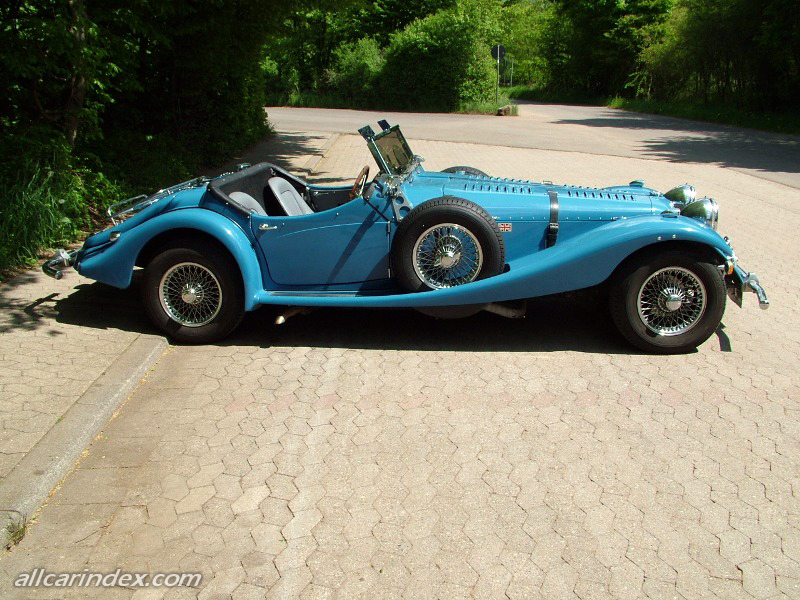 The Adams Roadster features a ladder frame chassis that incorporates components from the Jaguar XJ6, paired with a fiberglass body. This design allows for a blend of performance and aesthetic appeal. The roadster is available for purchase either as a complete vehicle or in kit form, which can be assembled by enthusiasts. Additionally, it can be offered as a conversion of the Jaguar XJ, further enhancing its appeal to Jaguar owners looking for a distinctive driving experience.