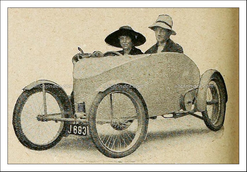 The early models featured a two-speed transmission with belt final drive, while the 1925/26 models upgraded to a three-speed Sturmey-Archer gearbox and chain drive. The larger models could accommodate four passengers and utilized a 988cc V-twin Blackburne engine. Notably, braking was achieved through blocks on the belt pulley rims, and steering was facilitated by a wire and pulley system connected to a center pivot front axle.