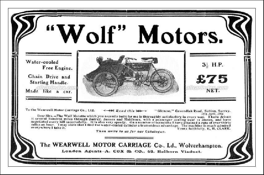 1899 – 1905 Company name Wearwell Motor Carriage Company Place Wolverhampton, Staffordshire Country United Kingdom