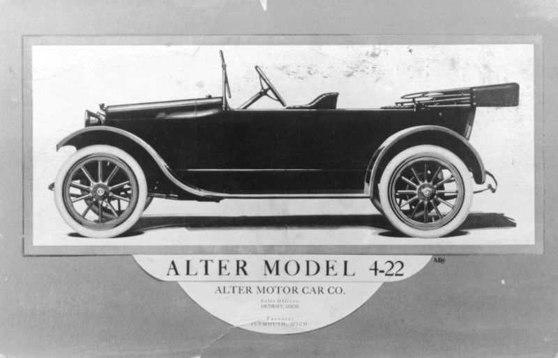 Alter Motor Car Company was an American automobile manufacturer that operated from 1914 to 1917. Founded in Plymouth, Michigan, the company began production in August 1914, focusing on conventional automobiles. The initial offerings included models powered by either a 23-horsepower four-cylinder engine or a 28-horsepower six-cylinder engine. The body styles available were limited to a five-seater tourer and a two-seater roadster.