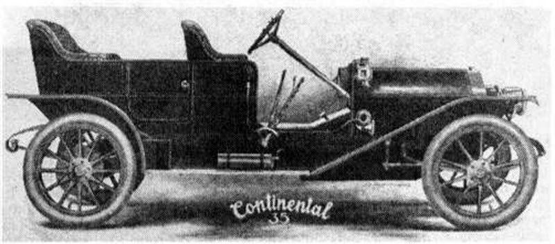 Continental was an American automobile brand that operated from 1910 to 1914, based in Franklin, Indiana. The company was established by the Indiana Motor & Manufacturing Company and produced conventional cars equipped with four-cylinder engines, offering power outputs of 35 and 40 horsepower. The models were available in various body styles, including torpedo, runabout, and tourer, although closed models were never part of the lineup.