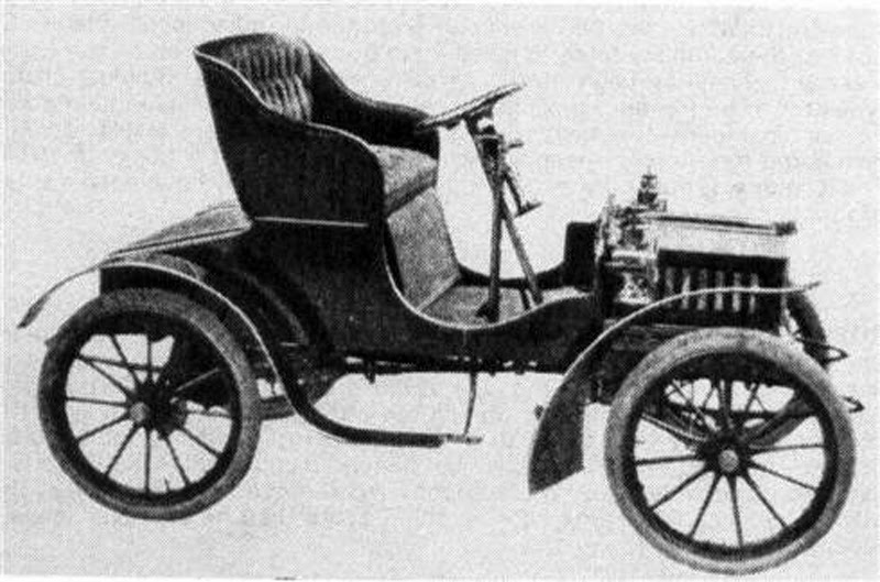 The first production model was a small runabout equipped with a 3-horsepower single-cylinder engine and chain drive. This vehicle featured a compact design, with a wheelbase of 62 inches (1575 mm) and a weight of only 350 pounds (160 kg). In 1903, the company upgraded the runabout by replacing the chain drive with a gear drive system sourced from a rear axle-mounted gearbox, which increased the engine's output to 5 horsepower.