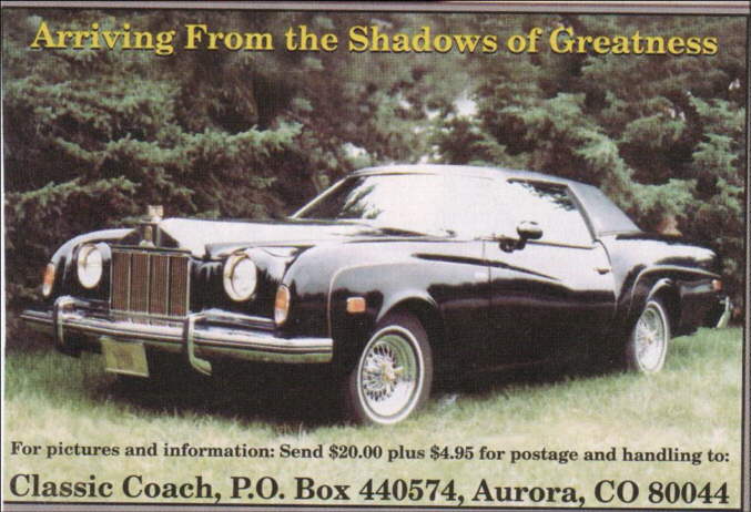 1978 – 1979 Company name Classic Coach Motors, division of United Auto Sales Inc. Place Aurora, Colorado Country United States