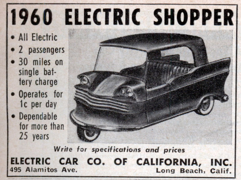 1952 – 1962 Company name #; Electric Shopper / Electric Car Co. of California Place Long Beach, California Country United States