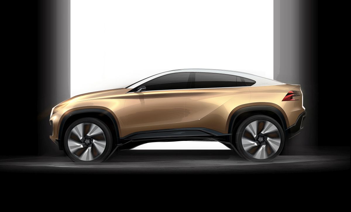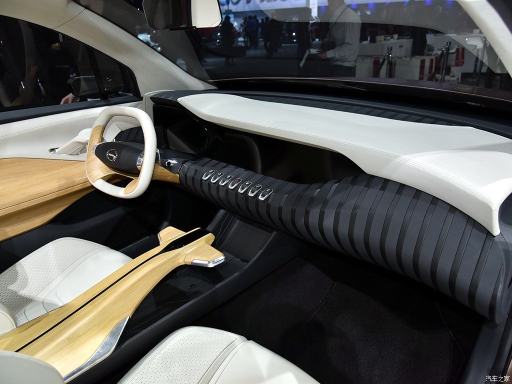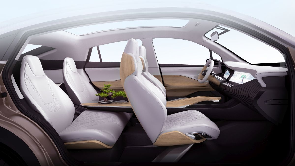 The face of EnSpirit is inspired from a roaring lion. LED headlights are integrated into the “Flying Dynamic” grill, and the aggressive front bumper is designed with three projectors. The leaning forward stance and the 2650mm wheelbase ensure the practicality and the sportiness of the vehicle. The fastback convertible roof, the boomerang-shaped chrome parts, the sharp tilted beltline and the dual blade taillights forms the unique identity of EnSpirit crossover. Different from the exterior design, the interior of EnSpirit demonstrates the great convergence of multi-culture in Internet era. The interior design shows the possibility of auto emotionalization by bringing technology and the oriental zen culture together. The 900mm widescreen is surrounded by bamboo-covered door panel, console and seats. The bonsai beside rear IP makes EnSpirit more appealing, and also demonstrates the oriental wisdom of human-nature harmony. The bonsai can also be monitored through a mobile phone app, creating a fun interactive experience. EnSpirit also carries two wireless-charged electric skateboards in the trunk, which gives the “last one mile”problem a practical solution.