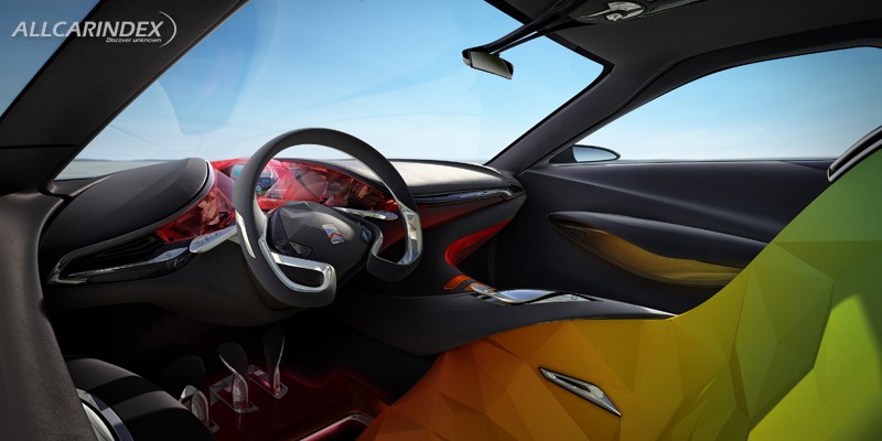 The shimmering interior makes a dramatic and eye-catching break with the deep grey bodywork. Onlookers will marvel at the rainbow hues of the cabin. Using these bright colours in the interior of an executive car interior underlines Citroën’s creativity.
