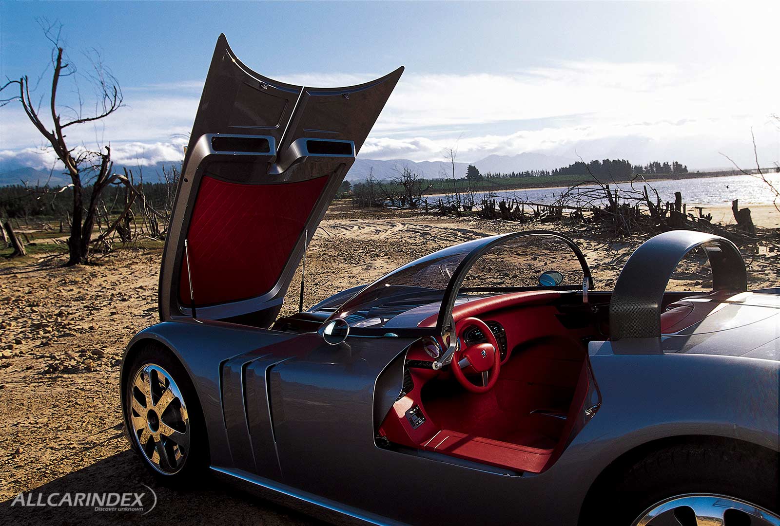At 4.07 m long, the aptly named car offers the same wheelbase as the sedan, resulting in extremely short overhangs. This muscular front-wheel drive car hides a longitudinally mounted V-6 engine beneath its very long hood, borrowed from the sedan. With unique double-wishbone and rocker suspensions at the front, this two-seater car, weighing less than 900 kg, could deliver tantalizing performance thanks to its power-to-weight ratio. Standing on its four wheels, shod with large-diameter (730 mm) Michelin Pax tires (allowing it to run flat), the 607 Féline, whose carbon fiber body is made of aircraft-style honeycomb panels, can be driven with the windshield closed, partially or fully open, thanks to unique openings. The doors disappear into the fenders, the windshield can slide, and the rear windshield can be retracted.