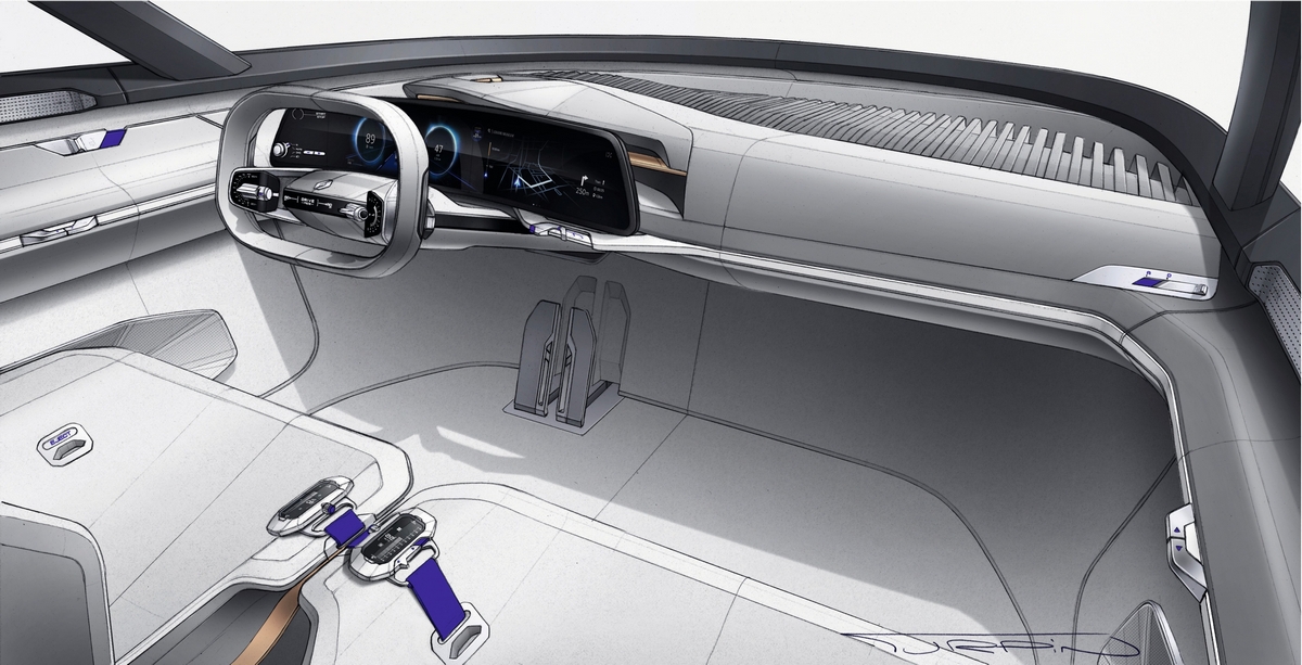 SYMBIOZ also shows Renault’s vision of the car as an extension of the home when travelling. Generous cabin space is attributed to SYMBIOZ’s rear-wheel drive configuration, with two electric motors located on the rear axle, and the batteries housed beneath the floor. The combination of the retracting dashboard, and pivoting front seats make it ideally suited to ‘Mind-off’ autonomous driving (1). In this mode, drivers can easily relax and chat, read a book or enjoy total access to their personal digital world. Additional personalisation technology allows automatic detection of passengers, customized seat settings, music streaming, and entertainment options.