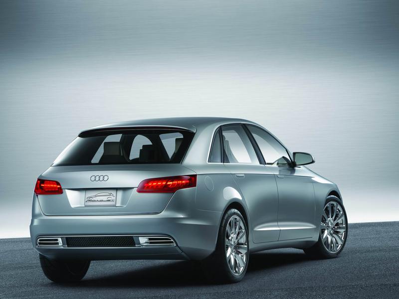 The impression created by the rear end, too, is decidedly dynamic: wide wheel arches, the trapezoidal tailgate and the diffuser below the bumper emphasise the sporty character of the Audi Roadjet Concept. The stepped rear lights extending well round into the sides echo this car's closest relations in design terms within Audi's current production range: the Avant models and the Sportback. The tailgate beneath the windows likewise extends well round into the sides, thus acting as a visual bridge between the rear and sides. The exhaust system's wide twin tailpipes, integrated into the striking diffuser, are another new element.