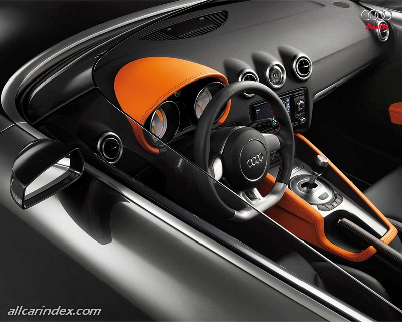 The sill area has also been restyled compared with the production model. Rather than being interrupted by a sill strip, it now emphasises the width of the car. A new door sill trim located further inside the car, along with floor mats sporting the TT logo as an aluminium inlay provide further visual highlights. The surrounding strip on the top shoulder is also made of this lightweight metal.