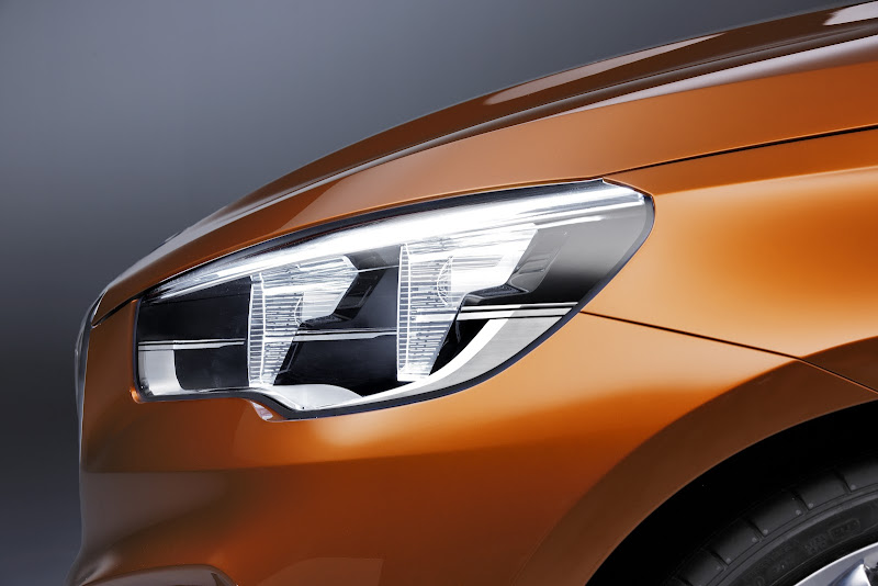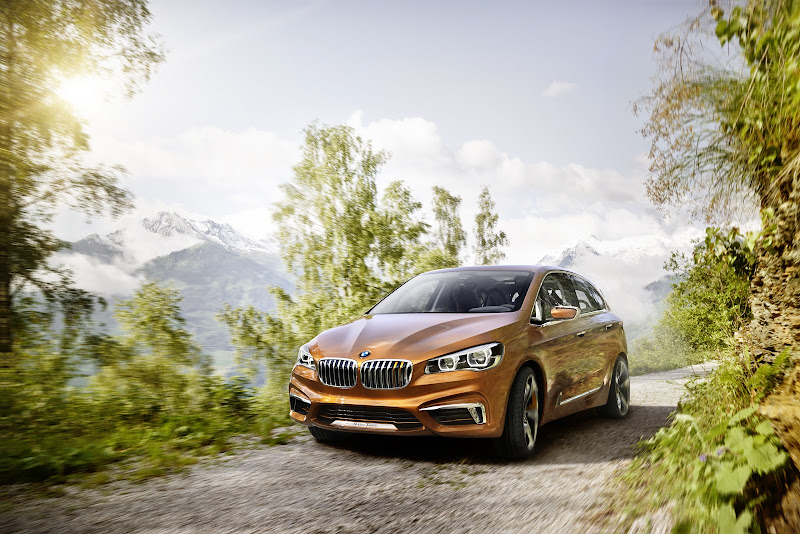 - Exclusive Gold Race Orange exterior paintwork accentuates the sporting appearance of the BMW Concept Active Tourer Outdoor.