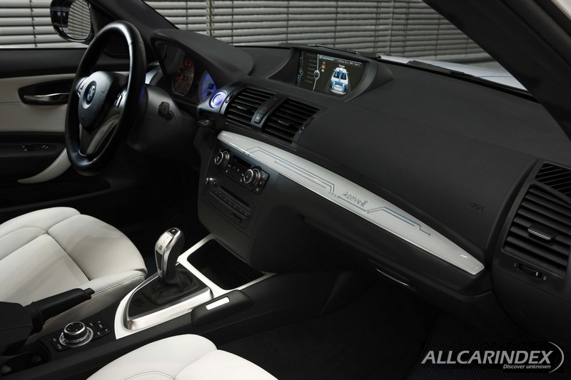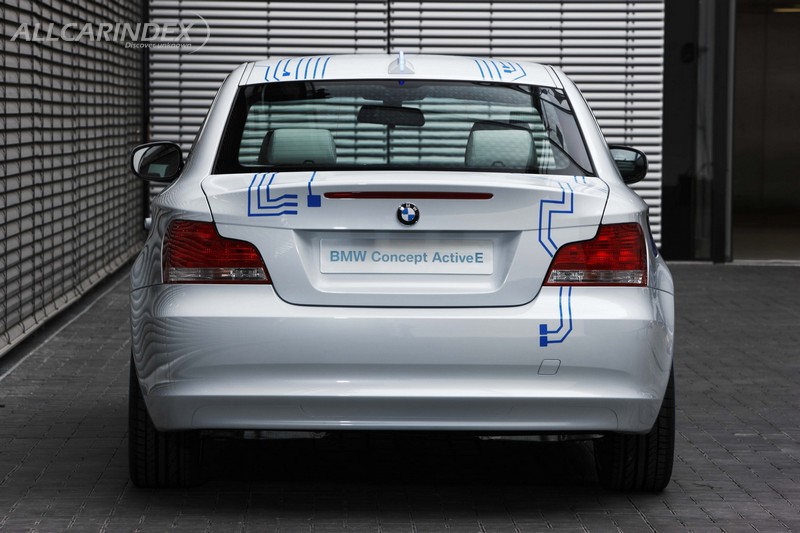 The technology of the BMW Concept ActiveE is highlighted through unique design features.The BMW Concept ActiveE is unmistakably based on the BMW 1 Series Coupe, well-known for its outstanding agility and efficiency. With its powerful proportions, the BMW Concept ActiveE also embodies an especially sporty form. Its side view is dominated by the striking shoulder line and the short overhangs. In addition, the BMW Concept ActiveE boasts striking light alloy wheels which are aerodynamically optimized. The distinctive appearance is partly created by the concept-specific rear apron which is completely closed, demonstrating that the vehicle is entirely emissions-free due to the lack of an exhaust system. There is a recognisable differentiation from the production model of the BMW 1 Series Coupe with the body finish in Liquid White metallic, as well as graphic elements derived from printed circuits in Electric Blue on the hood, doors, roof and trunk lid, as well as the lettering “ActiveE”, “eDrive” and “Efficient Dynamics” on the doors and side panels. The following elements also reflect the special character of this electrically powered vehicle: a blue illuminated charging connection behind a translucent filler cap, a glowing blue roof fin and kidney rods finished in blue. Blue rings on the tyres also make for a visual enlargement of the 18-inch wheel rims.