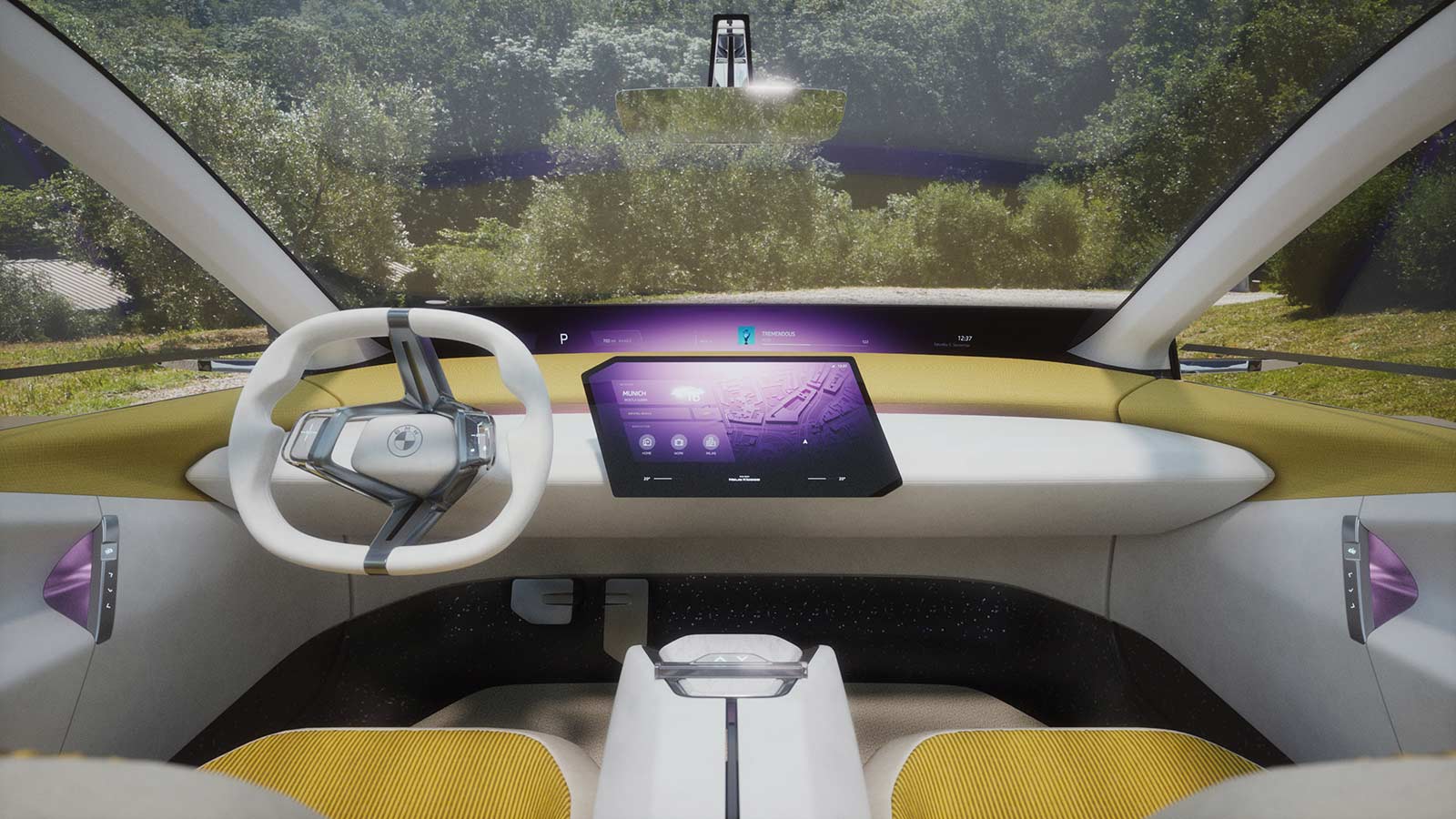 As it did with the introduction of the BMW iDrive controller in the centre console and the BMW Head-Up Display, the brand is once again leading the world with BMW Panoramic Vision, which will be available for the first time in the Neue Klasse. Information is projected at the ideal height into the driver's line of sight and, for the first time, across the entire width of the windscreen. This innovation will complement the enhanced BMW Head-Up Display in the production models of the Neue Klasse.