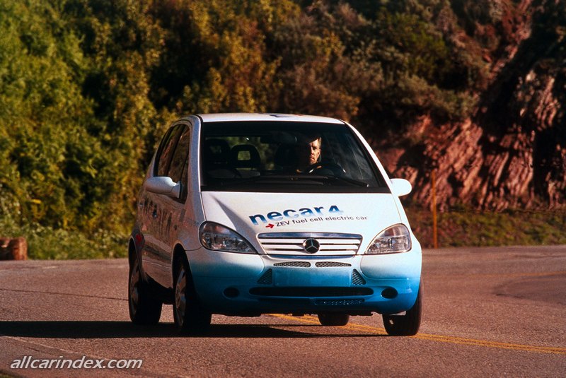 DaimlerChrysler engineers first succeeded in making the fuel-cell drive so compact that it would fit into the sandwich-construction floor of the A-Class in 1999, when the 70-kW NECAR 4 came out. Powered by liquid hydrogen, this latest model had a top speed of 145 km/h and could drive for 450 kilometres on a single tank of fuel, while it also had enough room for five people plus luggage. The NECAR 4a was specially built to be used in the fleet test carried out by the "California Fuel Cell Partnership". The drive technology was basically the same as that seen in the NECAR 4 but it had been redeveloped to run on compressed hydrogen, making it much more compact.
