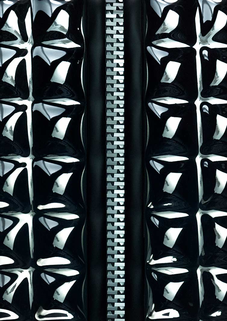 A closer look reveals further characteristic features that have a concrete connection to the original products and additionally create exciting contrasts: the rough patina is the visible trace of use, which refer to functionality and practicality. This forms the visual counterpoint to the perfect, high-gloss reflective surfaces that underpin the claim to luxury. Nor is it by chance that the PROJECT MONDO G bears the huge zipper, another deliberately striking and eye-catching element. The zipper is a practical reference to the versatility and variability of both products, vehicle and jacket.