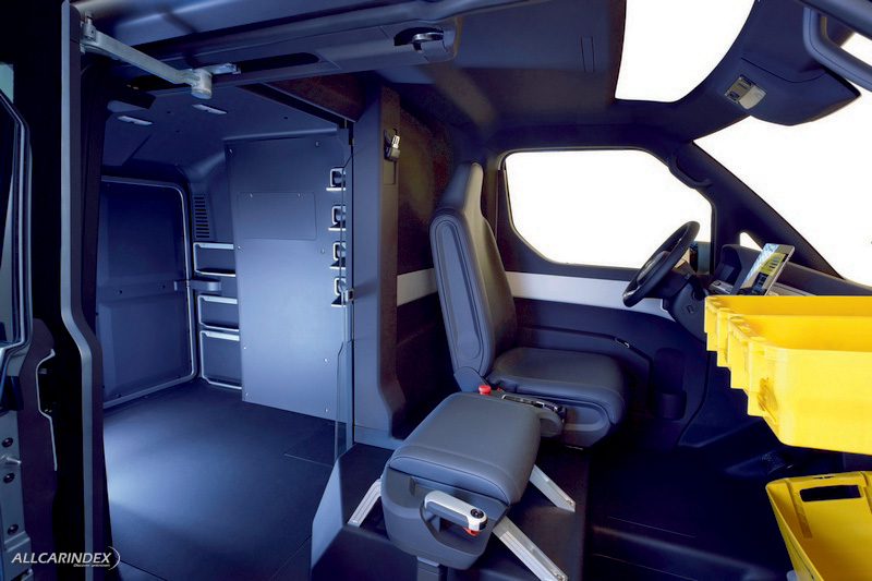 As an alternative, the driver can direct the car’s movements via a ‘drive stick’ from the passenger’s side that also offers a standing seat and quick access to the vehicle. On the passenger’s side – the side that faces the sidewalk and therefore the working area of the delivery person – there is therefore an electrically opening sliding door that opens to 2 different stages; this enables extremely quick entry into the vehicle as well as quick access to the mail parcels.