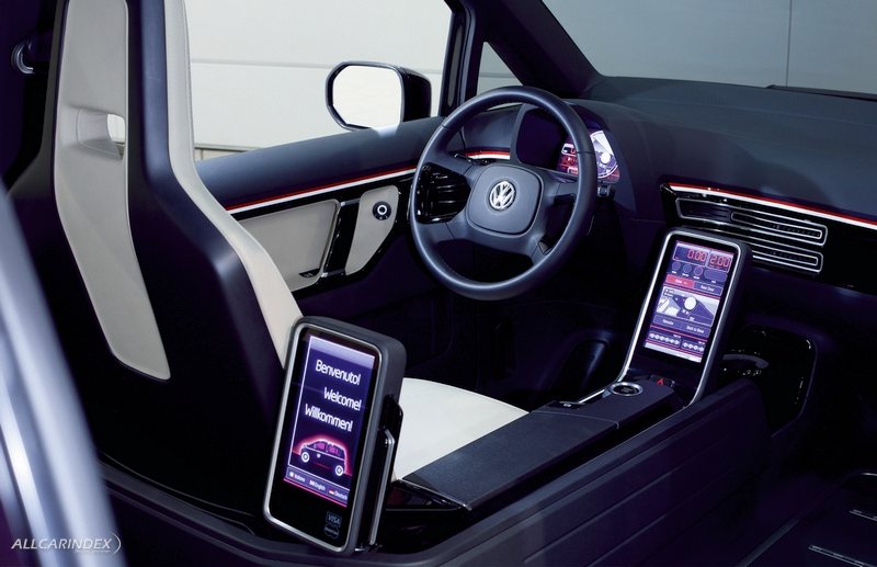The Concept, which measures 3,730 mm in length, 1,680 mm in width and 1,600 mm in height, is shorter than the current smallest Volkswagen, the Fox. However its long wheelbase and minimal front and rear overhangs allow it to have a spacious cabin with room for two adults to be seated in comfort plus an allocated area for luggage. At the front, the driving environment is similarly spacious, an impression emphasised by the large glass area.