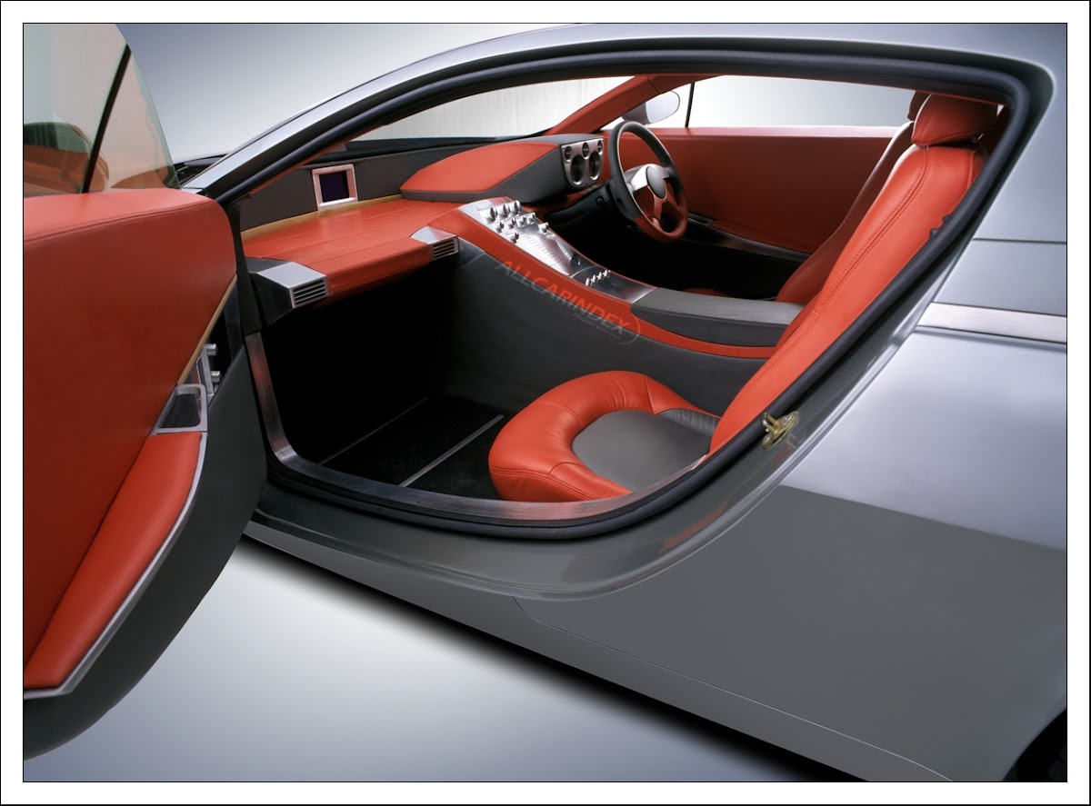 The interior reflects single surfaces away from highly organic shape of today's automotive interiors- much like minimalist Italian furniture. Subtle lines brought alive by bright colours. Angular aluminium accents dominate, in the midst of large surfaces relieving then of monotony. A thin maple strip gives some life to the otherwise metal dominated interiors- metal and wood in harmony. The interiors are completely hand crafted in the finest leather and also feature a central information screen.