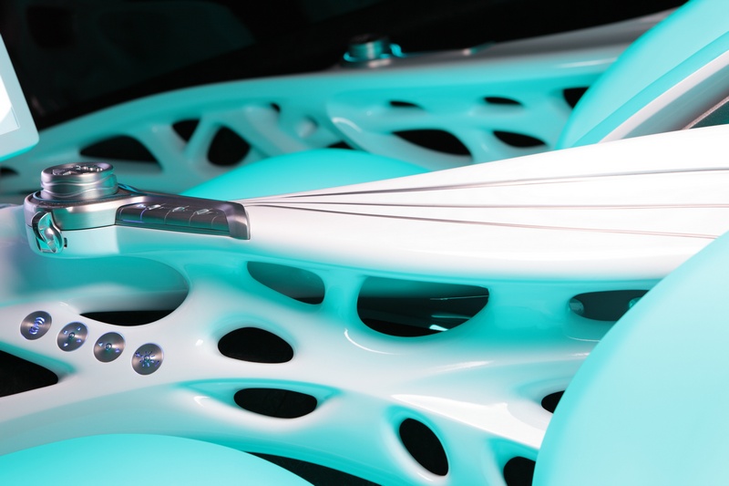 The design language used to create the passenger compartment has resulted in a fluid environment, due to the fittings that seem to have grown spontaneously, without ever having been either designed or constructed. We have named this expressive code, never seen before in the automotive sector until today, algorithmic design. The concept, taken from the world of mathematics, indicates an organic alternative to traditional design and is the ‘propagation of random forms’. It is as if the design were following a kind of complex development which is neither linear nor geometric, generating an ‘auto-organising’ shape, with the ‘spontaneous growth’ of algorithms such as ‘swarms’ or ‘vines’.