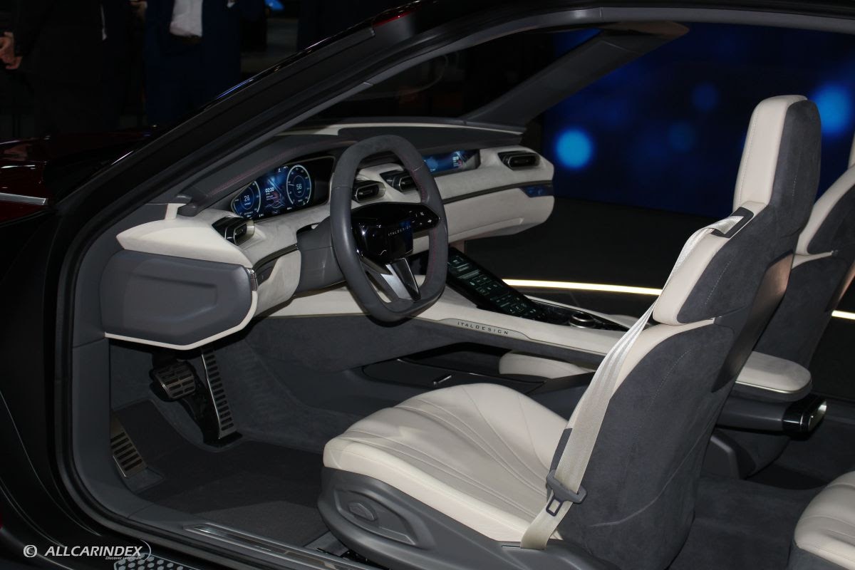 In keeping with its tradition, the Italdesign Innovation Design Department headed by Filippo Perini, conceived the design of this concept car so that with just a few adjustments it can easily be adapted to series production and the family feeling of several brands. The few ‘exotic’ features typical of a showcar are concentrated in the expansive gullwing doors, which allow both the front and rear seats to be accessed at the same time, as well as in the rear optical units and aerodynamic lateral tailfins integrated in the doors.
