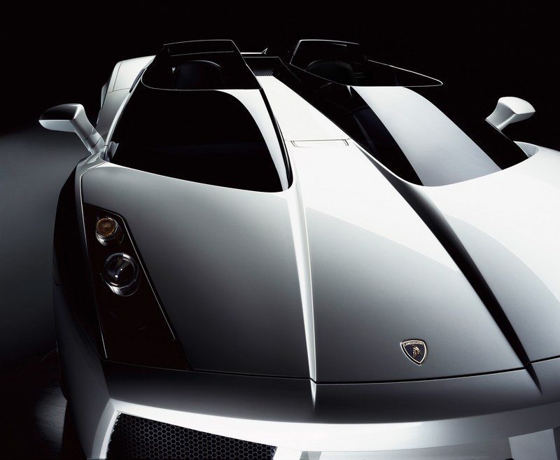 Classic single-seaters did not have a traditional windscreen, but utilised the „saute-vent“ in order to direct air over the head of the driver. In the “Concept S”, these devices divide the cabin into two distinct compartments, giving the car an aggressive and futuristic look They also create a space between them that acts as an additional air inlet for the engine, which is positioned behind the seats. And like the Gallardo, which serves as the basis for this stunning supersportscar, the “Concept S” is equipped with a powerful V10 engine.