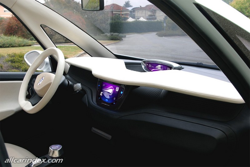 Innovative technology, sober, refined design and unmistakable brand identity place the Pininfarina BLUECAR out of reach of the merely trendy. The Pininfarina genetic code emerges in the dynamism of volumes and the balance of proportions. The body of the car is shaped like an elastic shell resting forcefully on the four wheels, arching over its vertical axis and thrust forward by the shape of the sides. This idea of perfectly controlled physical strength is enhanced visually by the arched sills which contribute to the idea of the volumes thrusting forward. In the front view, the distinctive signs of Pininfarina design are seen in the iconic appearance of a vehicle that is strong and sure of itself without being aggressive. The design decisions are perfectly functional to the electric supply, hence the unobtrusive, short and sloping bonnet. The car’s dynamic personality is underlined by the horizontal lighting clusters. At the base of the windscreen, an access hatch for recharging the batteries and for simplified routine maintenance. The wrap-round rear volume highlights the car’s agility and its liking for spurts of speed. The impression on climbing aboard is that you are in a vehicle that is much roomier than a normal city car: passenger comfort is guaranteed, as in a premium saloon, by four independent seats thanks to the absence of mechanical clutter due to the electric power unit. The interior trim stands out for the quality and precision of its detail and workmanship, a heritage of Pininfarina’s historic tradition. The upholstery, like all the furnishings, is in environmentally-friendly material. The central tunnel, which is both functional and decorative, and is moulded with refined lightness, has an original springboard form which strains forward towards the dashboard and hosts the window controls, the rearview mirror adjustment button and the original drive control which, of course, stands in for the traditional gear-lever.