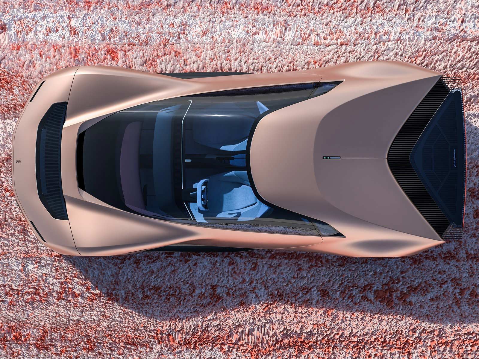 Back to the combination of styling with aerodynamics, the linear tail lamp is integrated into the actuated wing, sitting atop an aerodynamic sculpture, celebrating airflow and providing cooling around the rear-mounted engine. And note stunning Pininfarina design hallmarks like the flying buttresses and a roofline shaped by the wind.