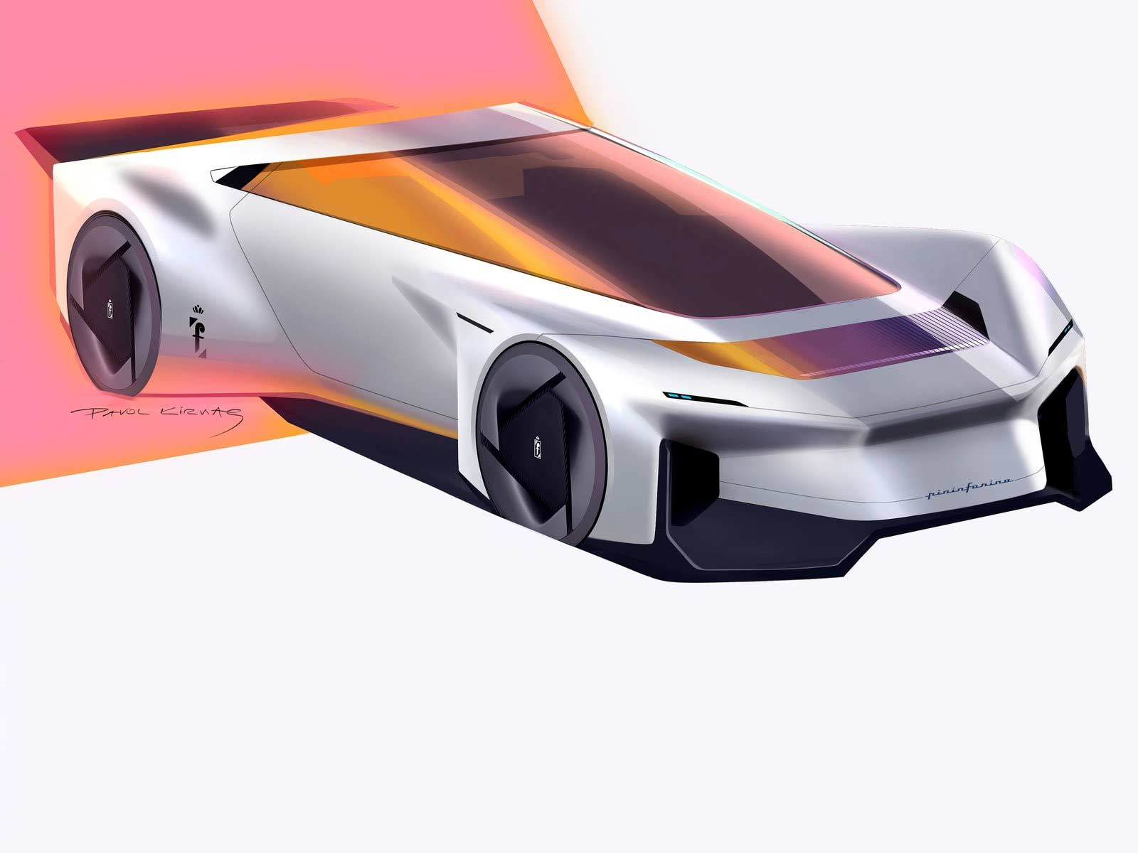 - a powertrain technology aimed at a very efficient combination of weight containment, driving fun, and sustainability. Pininfarina’s technology neutral approach led its designers and engineers to adopt a hydrogen-powered internal combustion engine driving the rear wheels, coupled with an electric motor at the front axle. This configures an AWD (All-Wheel Drive) setup, very consistent with a high performance GT car.