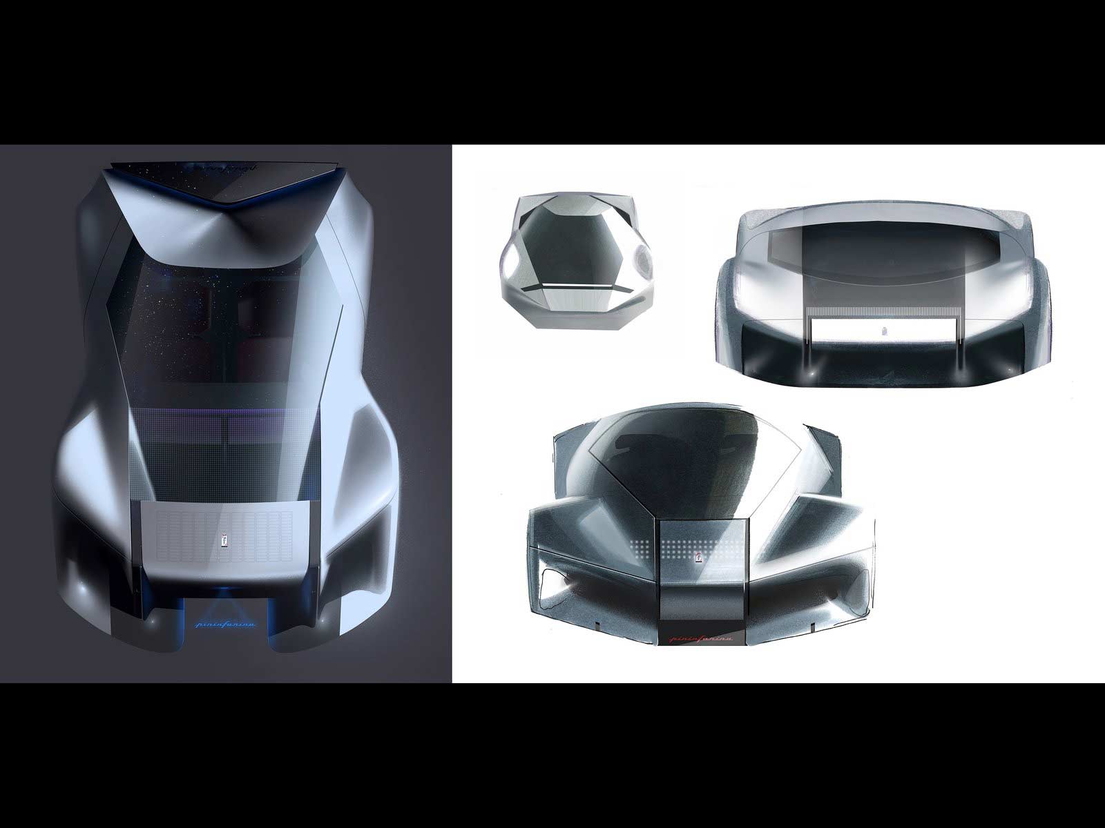 - The mid-rear engine layout has allowed for the optimization of the aerodynamic study of the front part of the vehicle and the minimization of the frontal area. Along with the extensive use of active aerodynamic elements and a careful study of the underbody fairing of the vehicle, Pininfarina has achieved an extremely efficient aerodynamic configuration, combining minimal drag with significant downforce.