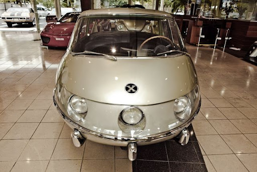 When the scientific research is combined with an original and revolutionary shape. The rhomboid arrangement of the four wheels and the exceptional dray coefficient (CD=0,23) allowed to obtain, with the same performance (Fiat engine 1089 cmc), higher top speed and lower consumption.