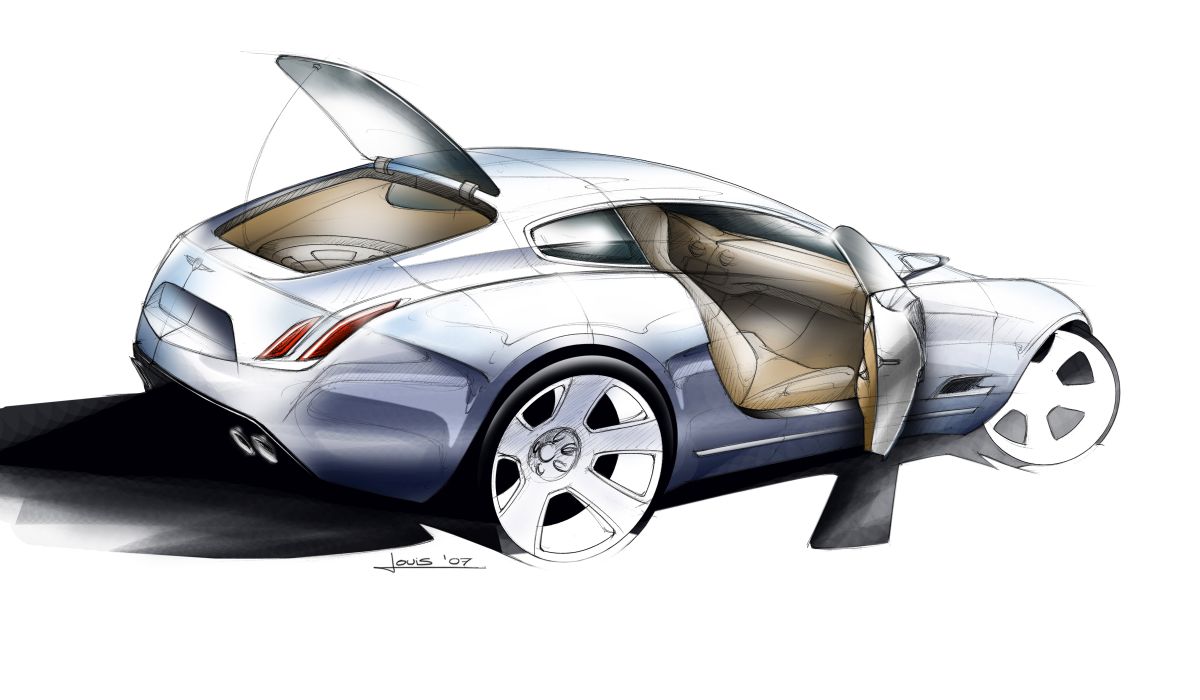 The sporty look of the car is underlined by the combination between bonnet and front grille. An element dashing forward the other volumes. Hence the lateral lines of the body: the lower line ends on the rear wheelarch and the upper line dissolves in the rear end of the car. Together they create a dynamic sail shape, as on Flying Stars.