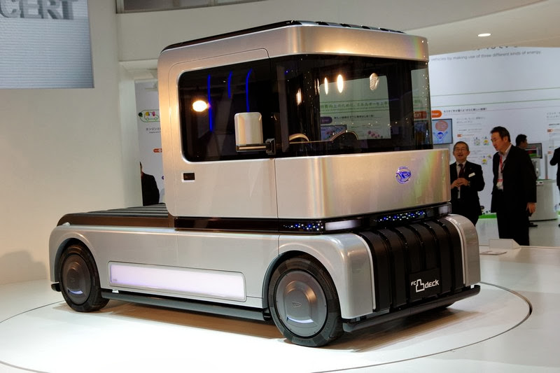 The FC Deco Deck on the other hand has been developed as a zero-emission next generation mobility vehicle. Equipped with a unique precious metal-free liquid fuel cell system developed by Daihatsu, it falls within standards for mini vehicles. Daihatsu will also be exhibiting two types of generators based on the same fuel cell system: FC-Dock 20C and the FC-Dock 5C. These are technologies that will open up new possibilities for the energy society of the future, offering security and freedom.