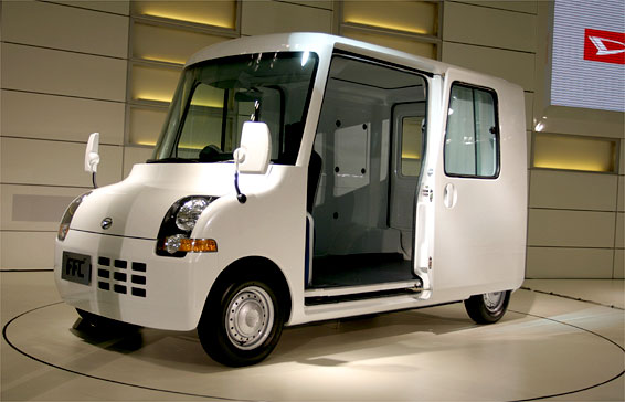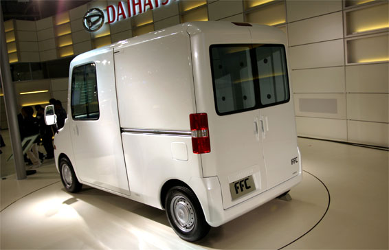 The package delivery and mobile business world is offering a greater variety of services as it evolves in multiple directions. Increasing owner-operated small businesses and women drivers create additional demand for light cargo vans. The FFC is designed to meet these needs. A rectangular-box-shaped cargo area offers excellent load handling. Dual side sliding doors and a low full-flat floor facilitate work efficiency and ingress and egress. Versatile compartments can stow a variety of items. The passenger seat is folded for easy access to the cargo area. A sedan-like driving position and plenty of advertisement display space add to the FFC's appeal. Add environmentally friendly minivehicle performance and the future of small cargo vans is here.