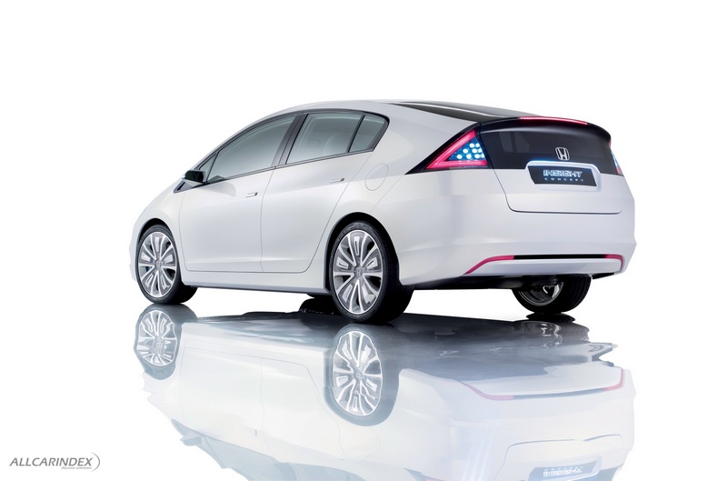 Based on a theme of achieving dynamic performance through excellent aerodynamics, the exterior design of the Insight concept model combines excellent environmental performance and a fun to drive spirit. The compact Insight Concept measures 4,375 mm (172.2 in.) in length, 1,695 mm (66.7 in.) in width, and 1,425 mm (56.1 in.) in height, with specially designed, ultra-light aluminum wheels and 205/40 R18 tires. With a cockpit that enables the driver to experience the joy of driving, the interior of the Insight Concept provides an advanced and futuristic feeling that is possible only through a hybrid vehicle.
