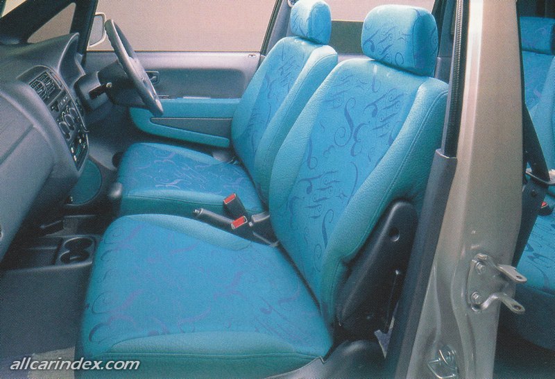 Driving is easy because the driver's seat is positioned to provide a high line of sight. The interior is comfortable for both the driver and passengers. Practical features abound, such as rear seats with a large sliding range, convenient underfloor storage space, a streamlined interior that provides passengers with flexibility in its use, and safety features such as a dual SRS airbag system and ABS anti-lock brake system.