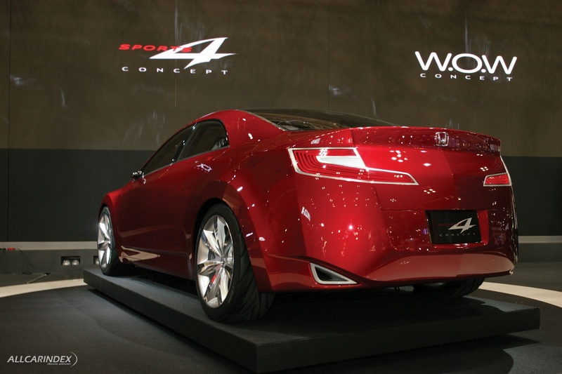 Honda has always led the way in sports performance. The Sports 4 Concept is our vision of a sports car of the future, a vehicle that allows anyone, not just expert drivers, to experience the excitement of driving a high performance automobile. And we want to ensure that all those in the vehicle can share in the fun. We chose a mid-size body to strike the ideal balance between superior driving performance and spacious comfort. We then equipped it with Honda, s original Super Handling All-Wheel Drive technology, which dynamically allocates torque to all four wheels for enhanced cornering performance, delivering superior driving stability and handling. In the cockpit, the switches and instruments are laid out for at-a-glance recognition and intuitive control, while four independent bucket seats create an environment in which not only the driver but also the passengers can savor the thrill of the ride. The Sports 4 Concept makes sporty performance freer and accessible for all.