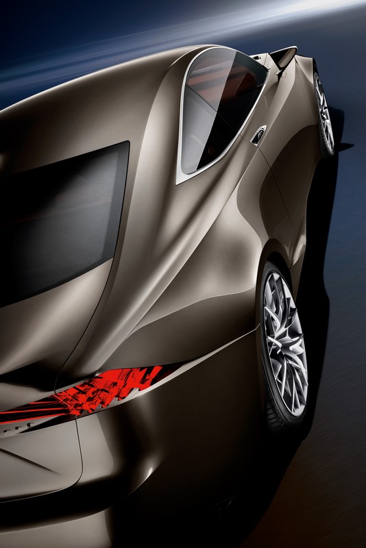 Further developing a design form initiated on the LF-LC concept and the high-performance LFA, the sharply sculpted form of an airflow regulating fin flows from underneath the side of the car and upwards through the rear wheel arch. This aerodynamic detail is designed to increase downforce over the driven wheels, further improving traction.