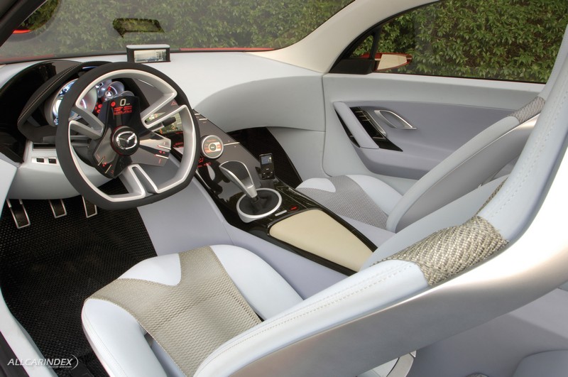 Power is supplied to Kabura’s rear wheels by a 2.0-liter version of Mazda’s highly respected MZR DOHC 16-valve engine and through to 245/35R19 Bridgestone Potenza front tires and 245/35R20 tires at the rear. While this concept has been constructed over several MX-5 chassis components, basic dimensions fall between Mazda’s MX-5 and RX-8 sportscars.