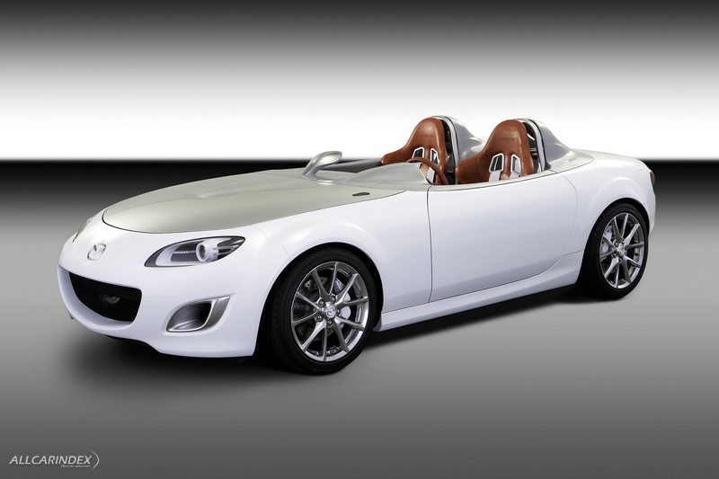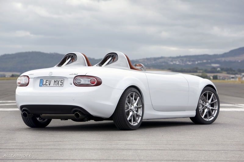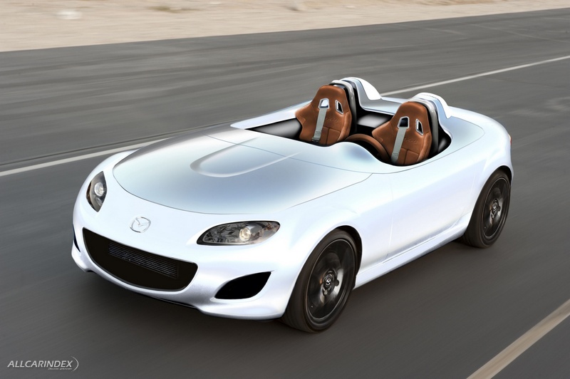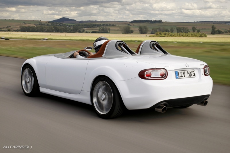 Mazda designers created special roll-over bars, not only because they are very sporty-looking, but also to contribute to aerodynamic efficiency. These also make it clear that roll-over protection is important in this concept. And they prevent wind turbulence around the heads of the passengers, from whom the law would require the wearing of helmets while driving.