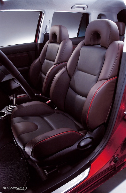 The black and brown, two-tone leather seats are highlighted with red pin striping along the outer seam, expressing a simple, modern, well-tailored appearance, and complimenting a similar striping treatment on the instrument panel. The color coordination, including the continuous black/brown/red leather trim running from the instrument panel to the door trim, is a clear expression of the individuality and active lifestyle that characterizes the target customer.