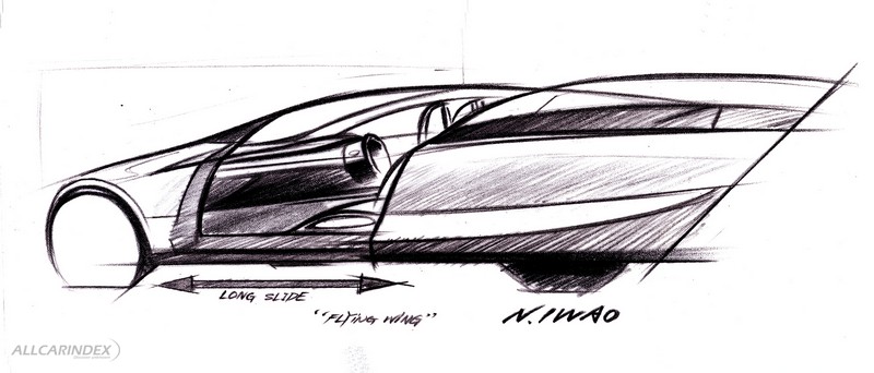 To permit the luggage area to be used like that of a station wagon within the body’s unique proportions, the Senku has a newly conceived rear-gate arrangement consisting of two powered rear gates: an upper gate that slides forward over the roof and a lower gate that slides downward. Either or both of the gates can be opened as necessitated by the size of luggage items. Also, the sliding nature of the gates permits opening and closing under low ceilings.