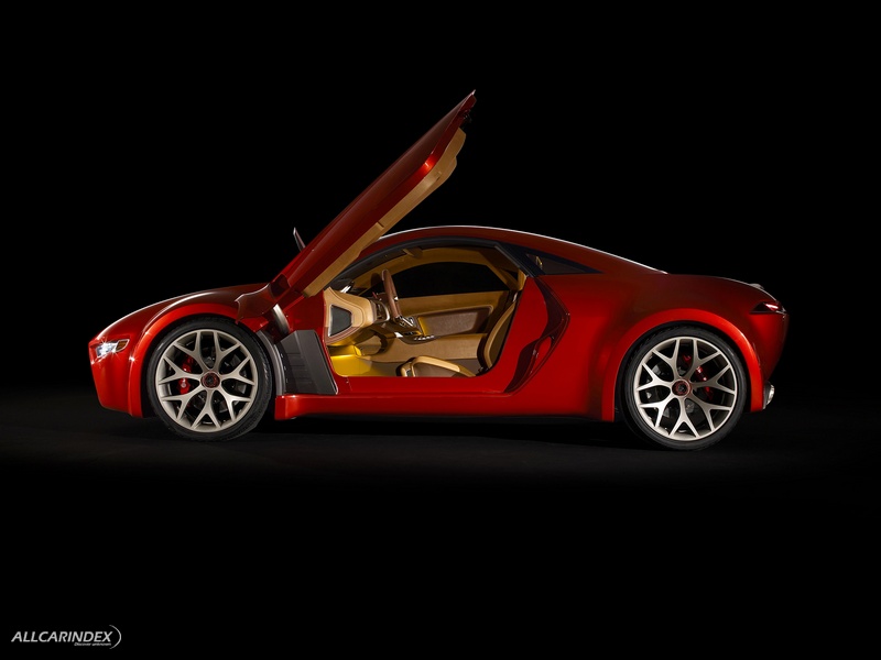 MITSUBISHI Concept-RA uses red exterior coloring that graphically accentuates the beauty of its fluid body lines, counter-pointed by a matte black engine hood that imparts a strongly mechanical flavor.