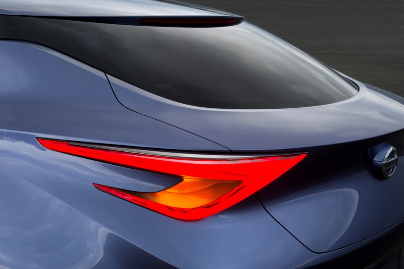 A low and wide stance with short front and rear overhang emphasizes more chunky, aggressive and sporty impression rather than authentic sedans. Together with this challenging proportion, distinctive design aspects are presenting one of the new directions of Nissan appearance. The energetic and fluid momentum which arises from ‘V-motion' shaped grille streams through the hood to shoulder creates the impressive cadence with emotional aura.