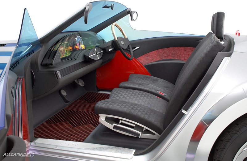 The year 2003 coincides with Nissan's 70th anniversary and the 400th anniversary of the Edo Shogunate. Inspired by Nissan's heritage, Jikoo concept car has been created around the idea of combining advanced technologies and traditional industrial arts from two different historical and temporal worlds. While inheriting the compact size yet dignified character of the original Datsun Roadster, Jikoo gives expression to Nissan's sporty heritage and embodies Japan's traditional aesthetics and artisanship.