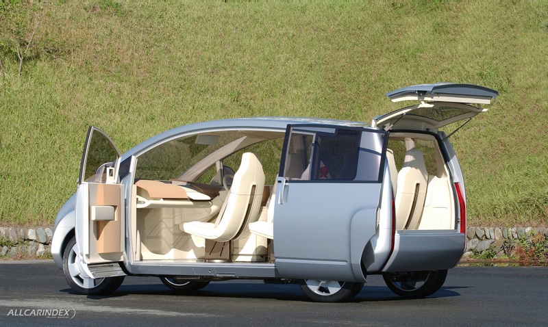 A six-seat compact minivan designed for young families and providing a host of "living-room comforts". The Kino is an ideal vehicle for young families with children. Executed in a refined design and incorporating a wealth of new ideas, the Kino has generous interior space in which six independent seats are arranged in three rows within its compact size. The vehicle can accommodate a wide variety uses, thanks to its highly functional appointments and versatile seating configurations.