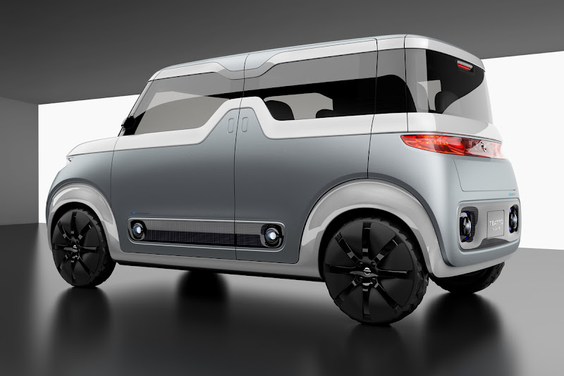 Nissan's research indicated that minicars will be the vehicle of choice for share natives. "In addition to being compact, minicars remind them of the handy mobile devices they carry in their pockets," says Sasaki. EV technology is a must for this generation. "Share natives are already accustomed to recharging their devices at home, so EVs fit their lifestyles far better than cars that require regular visits to a gas station." With a driving range ample for short commutes, Teatro for Dayz can serve as a giant mobile battery, which can be used anywhere to recharge mobile devices.