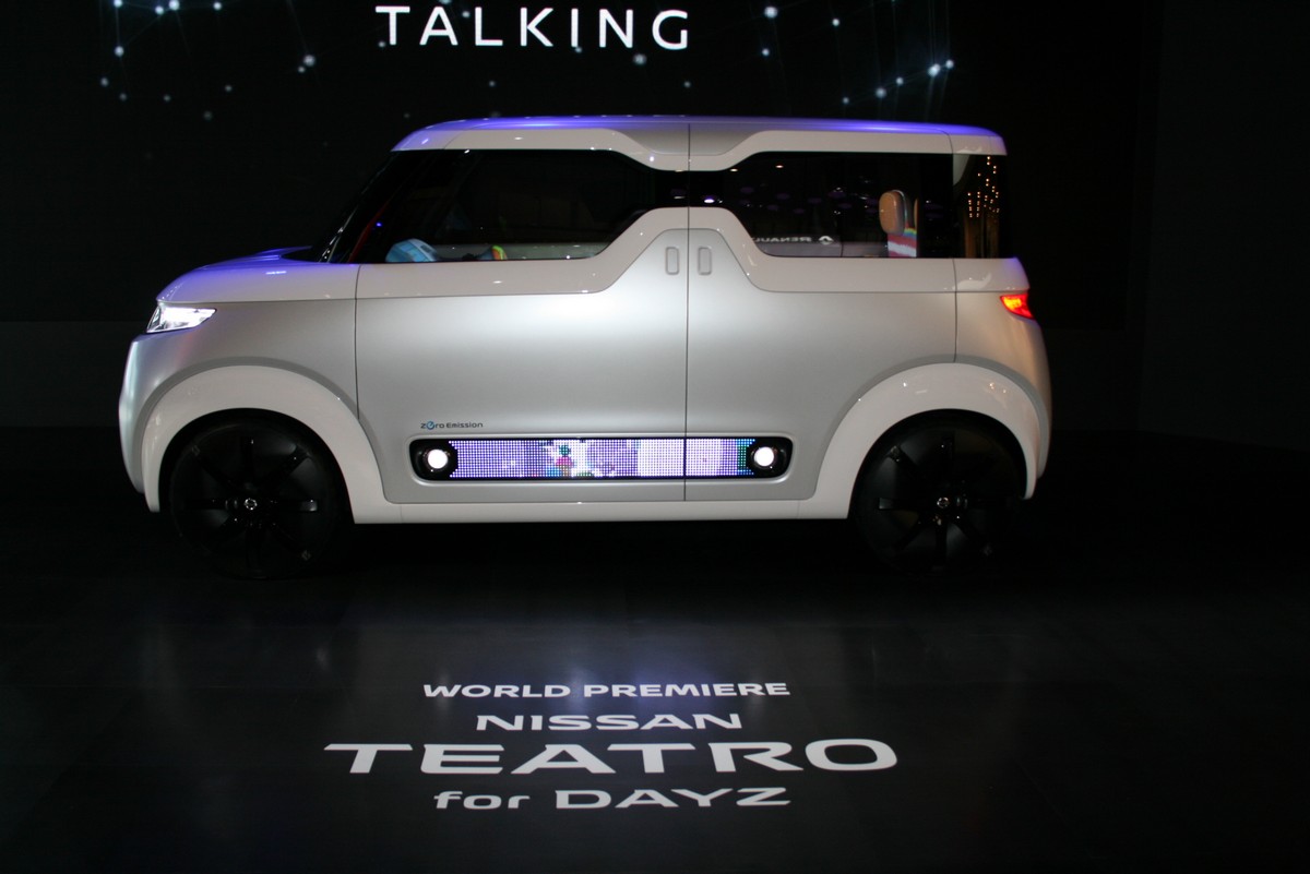 Teatro for Dayz is a combination of mobile technologies unlike any previously imagined in a car. Combined with Nissan's EV technology, this car represents a radical new way of thinking about how vehicles can be used.